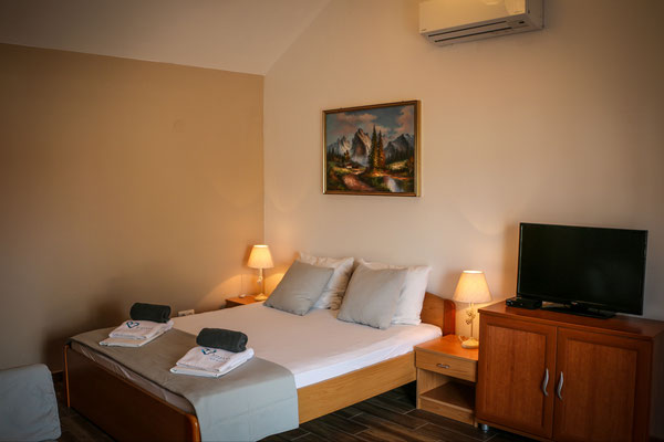 Svi naši apartmani opremljeni su klima uređajem, kuhinjskom opremom i priborom, TV s SAT i još mnogo toga.